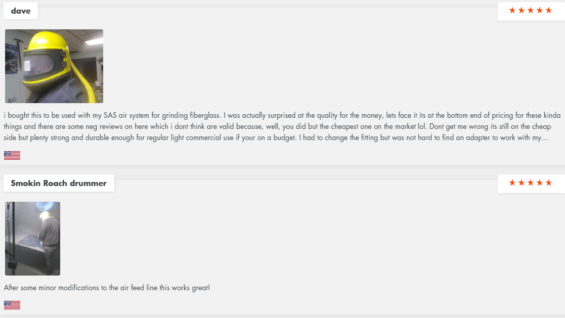 i bought this to be used with my SAS air system for grinding fiberglass. I was actually surprised at the quality for the money, lets face it its at the bottom end of pricing for these kinda things and there are some neg reviews on here which i dont think are valid because, well, you did but the cheapest one on the market lol. Dont get me wrong its still on the cheap side but plenty strong and durable enough for regular light commercial use if your on a budget. I had to change the fitting but was not hard to find an adapter to work with my Survive Air system. The consumable lens is easy to change and easy to just make your own if your hard on them.